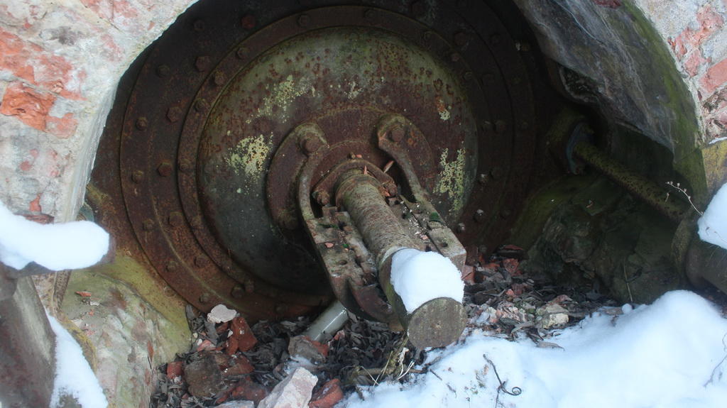 Остаткки механизмов и искусственный водопад свидетельствуют о том, что при бумажной фабрике работала гидроэлектростанция.