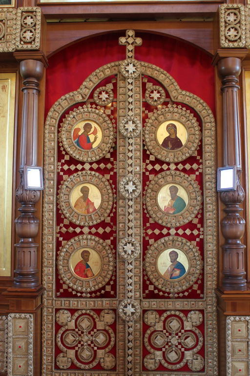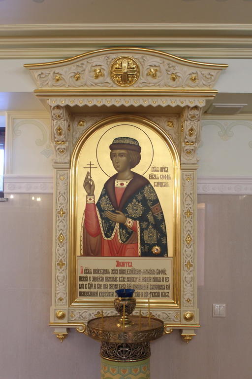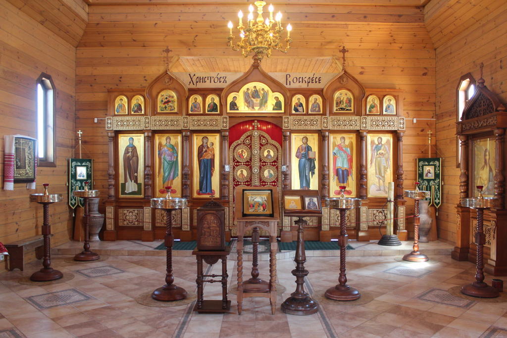 В полуподвальном помещении постройки находится также еще один храм - Анастасии Слуцкой. Обращает на себя внимание иконостас, украшения которого выполнены из соломы.