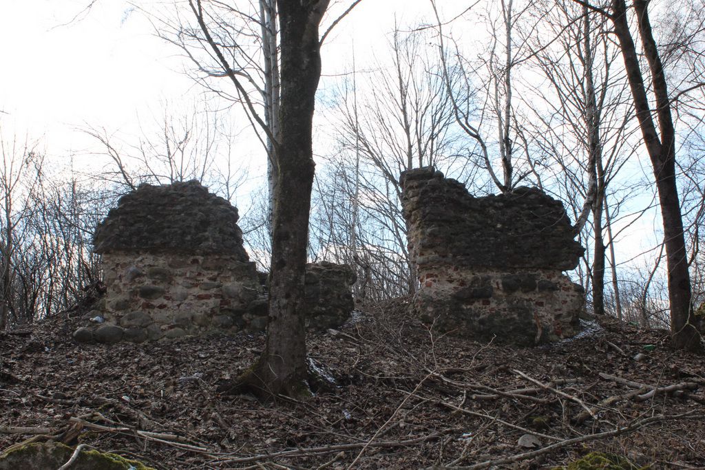 Последним пунктом в данном путешествии, но самым интересным, стоит деревня Геранены. Когда-то это был довольно крупный населенный пункт, имевший, в том числе, свой герб. Здесь в конце XV – начале XVI вв., когда Гераненами владел сильный, но вскоре угасший род Гаштольдов, был возведен каменный замок. К сожалению, от него мало что сохранилось – всего несколько участков стен, но до наших дней дошел крепостной вал и частично ров. Замок был взорван шведской армией во время Северной войны (1700-1721 гг.).