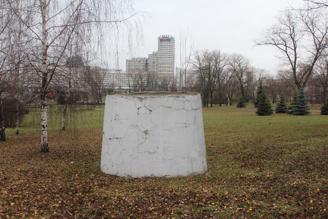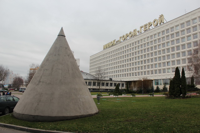 Эта конусообразная постройка находится в самом центре Минска, на всеобщем обозрении, возле здания «БелГосПроекта»; с проспекта Победителей объект хорошо виден в любую погоду, но почти никто, из проходящих мимо, или проезжающих, знает, зачем эта бетонная штука здесь. Да, перед вами немецкий ДОТ. Интересно, что постройка, не смотря на ее зловещее предназначение, для бывшего СССР уникальна. Такие находятся лишь в Минске и Смоленске. А вот в Германии и Австрии такого типа объектов, в основном использовавшихся как бомбоубежища, сохранилось намного больше.