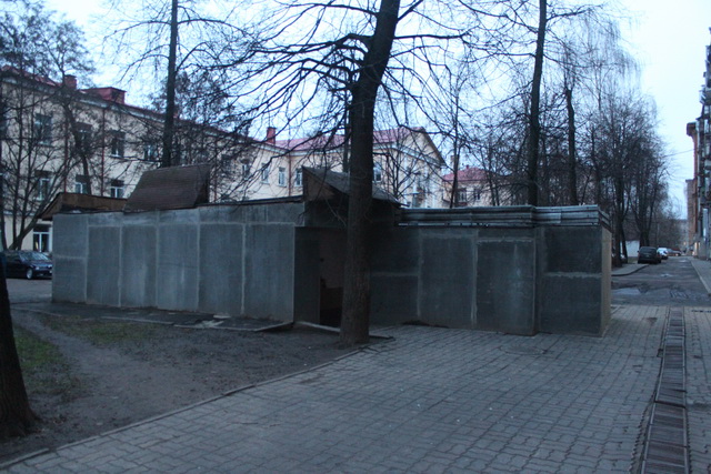 Следующая постройка только предположительно является ДОТом. На это указывают несколько фактов: характерная форма и месторасположение. Объект почти примыкает к зданию Гимназии №23 на пр. Независимости почти ровно через дорогу от места, где на самом деле, перед костелом св. Роха, стоял другой ДОТ, который, вероятно, даже не разрушен, а только зарыт в землю. Эти два оборонительных сооружения могли работать в паре. Рассматриваемый объект мог иметь военное предназначение, но его либо не достроили, либо он был сильно разрушен и позднее достроен до тепло-узла; об этом свидетельствуют четыре канализационные люка, расположенные в его крыше.