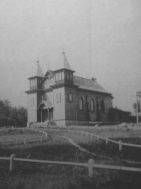 Стиль: Неоготика. Юрьевский костел построен из дерева (арх. К. Войцеховский).