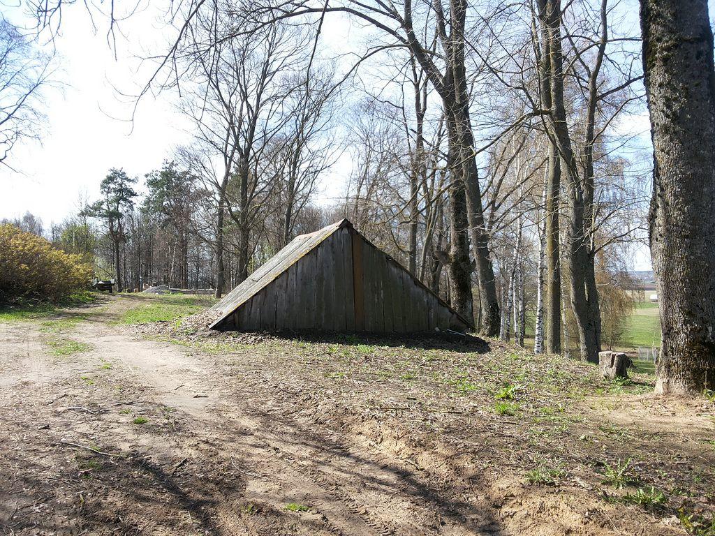 Сохранились каменные стены постройки ниже уровня земли.