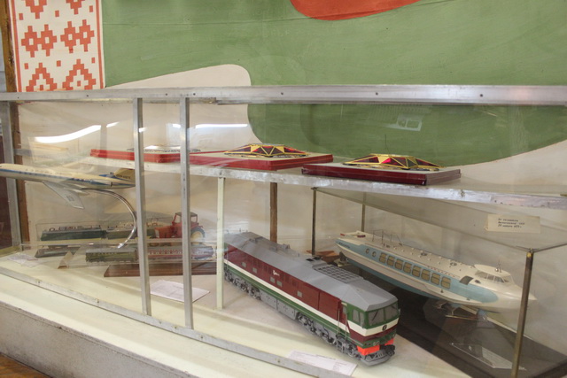 Конечно, модели паровозов, вагонов, локомотивов. Причем очень детальные: можно посмотреть на дверцу топки и дизельный двигатель.