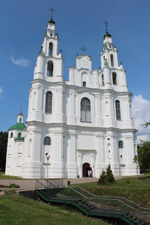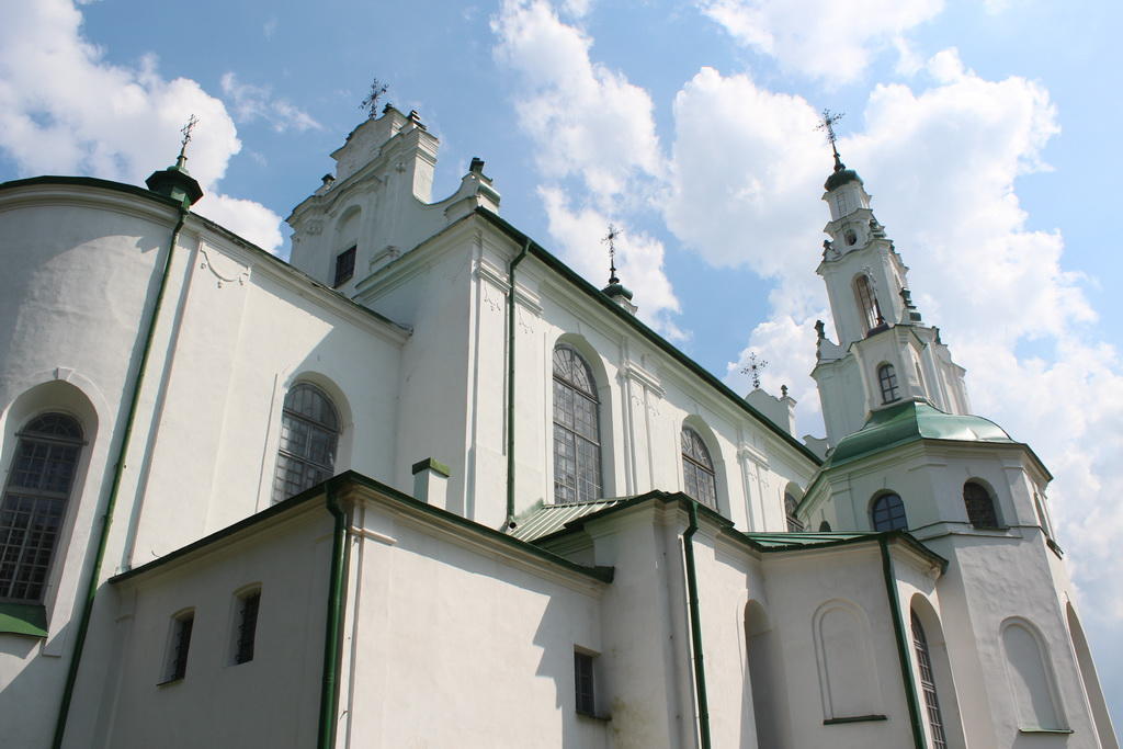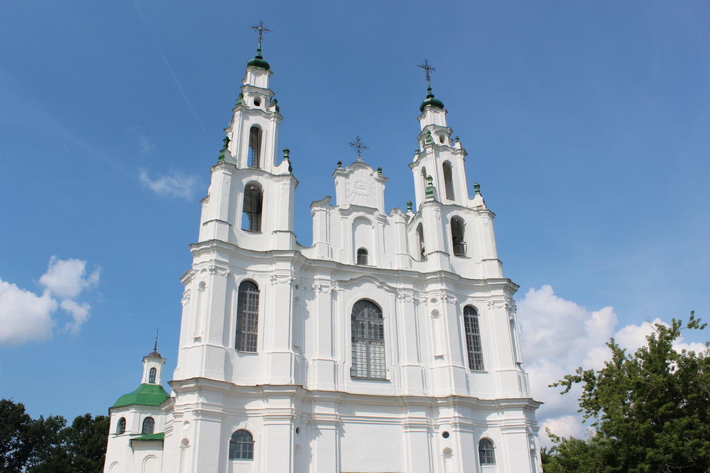 Полоцкий Софийский собор является кафедральным. Первое здание собора было возведено ок. 1044-66 гг. при князе Всеславе Чародее. Это был один из трех Софийских соборов построенных в Древней Руси (Киев, Новгород, Полоцк): пятинефный крестово-купольный храм с княжескими хорами, выделенная алтарная часть в центральной апсиде с синтроном, диаметр купола - 5,85 м. Судя по летописным истоничкам, предполагают, что у храма было 7 глав. Отличия от Киевского и Новгородского: отсутствие галерей; не пять, а три апсиды.