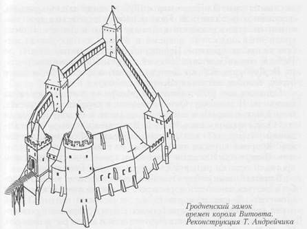 Во времена князя Витовта замок имел пять башен и был очень мощным оборонительным сооружением, в котором гармонично сочетались удобная для обороны местность и мощные каменные укрепления. Въездная башня, в сечении квадратной формы 12 х 12 м, была расположена на юго-восточном углу крепости. С городом ее соединял подъемный деревянный мост. Самая высокая из башен имела круглое сечение. Построенная XIII в. (первое упоминание под 1277 г) по своему виду она была похожа на оборонно-сторожевую вежу в Каменце. До нашего времени башни не дошли: одни разобрали при постройке дворца Стефана Батория в конце XVI в., от других сохранились фундаменты и частично стены.