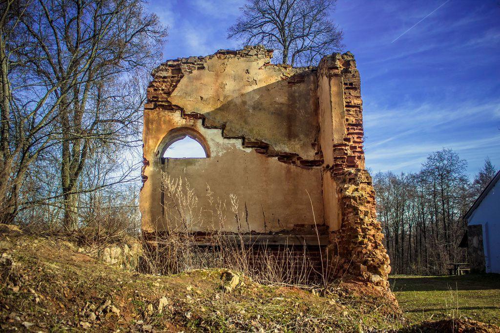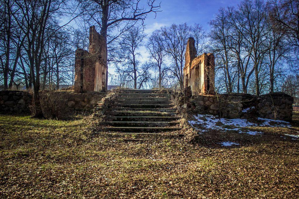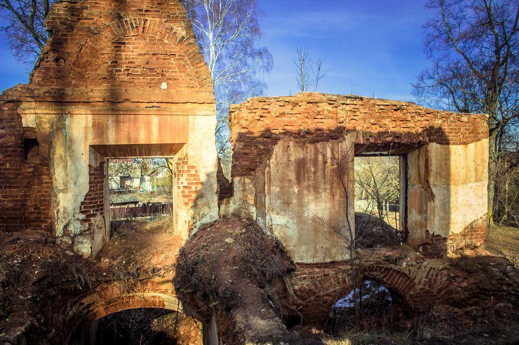 Усадебный дом ныне - это руины первого этажа и остатки стен второго.