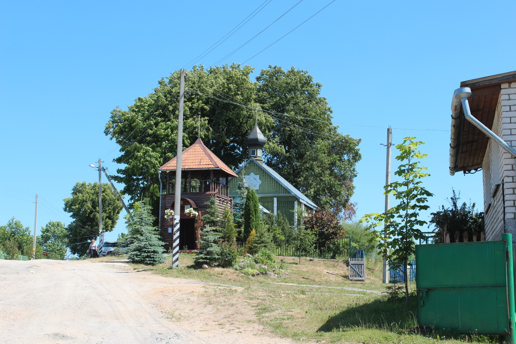 Из Минска на автобусе приезжаем в деревню Жуковка. В ее центре стоит деревянная церковь св. Петра и Павла. Дата постройки, вероятно, 1884 г. (выбито на валуне при входе в церковь). В 1991 г. здание обновлено, построена колокольня.