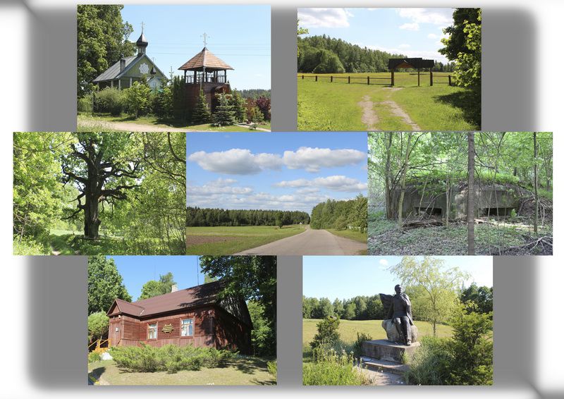 В 1909 г. по соседству, в фольварке Окопы, жил Янка Купала. Пройти туда можно по заброшенной лесной дороге, но без навигатора это сделать сложно, следы дороги теряются. Если не хотите заблудиться, лучше вернуться на бетонку и по ней дойти до Хоруженцев. В начале этой деревни стоит указатель на «Окопы», до которых нужно пройти еще около 2 км. От построек фольварка на лугу сохранились фундаменты. От них тропинка ведет к мостику, за ним на поле лежит огромный валун Купалы, к которому прикреплена плита со стихами поэта.