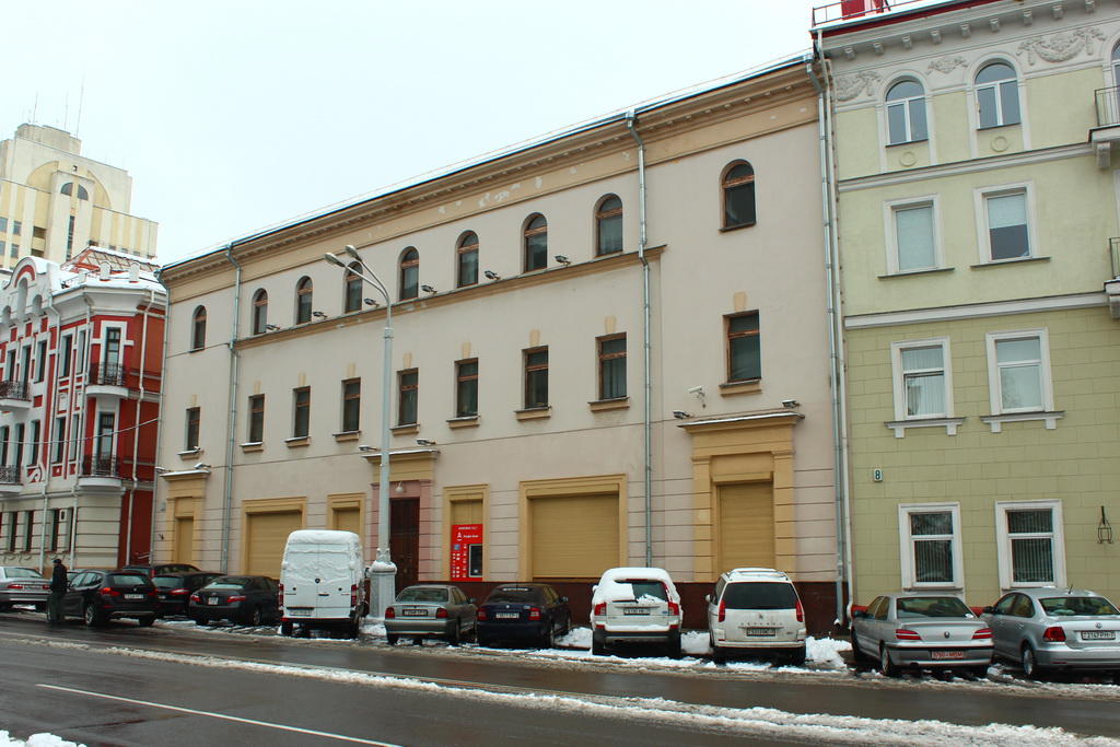В 1896 г. построен одноэтажный дом, второй этаж достроен в 1898 г., а третий в 50-е гг. XX в. С 1897 г. здесь размещалось училище для слепых. В 1905-1908 гг. в здании находилось минское отделение крестьянского поземельного банка.