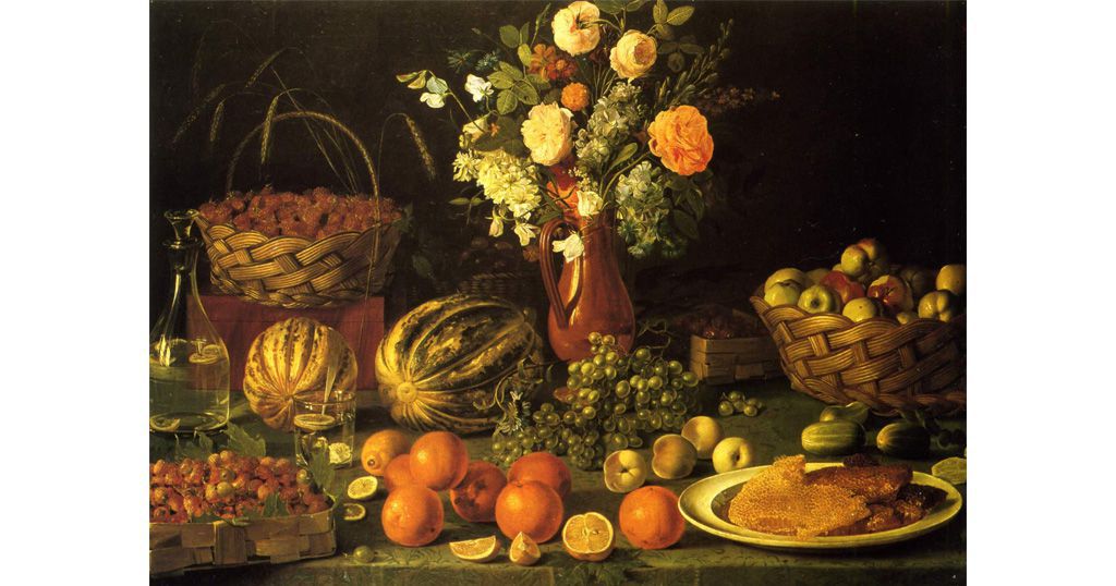 Иван Фомич Хруцкий является примером талантливого художника трудоголика, который при жизни не успел получить хотя бы малую толику славы, признания и почтения. Ценность его картины обрели значительно позже после его смерти. Еще одним примечательным фактом, из-за которого об этом белорусском художнике долгое время практически ничего не было известно, является полное отсутствие в Беларуси работ до Второй мировой войны. Только после окончания кровопролитного вооруженного конфликта Елена Аладова, идейный вдохновитель воссоздания Национального художественного музея в Минске, начала постепенно выкупать полотна мастера из частных коллекцией. Таким образом на родину в музей вернулось более 25 картин. В основном Хруцкий работал в жанре натюрморта. Особенно хорошо у него удавались фрукты и овощи. Великолепно писал художник и портреты. Лишь единожды он нарисовал автопортрет, уже накануне своей смерти. Две однотипных картины со своим изображением он подарил дочери и сыну. Благодаря этому мы можем знать, как выглядел Хруцкий.