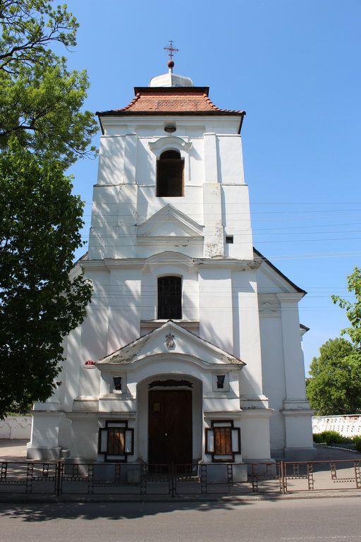 Однонефный храм с небольшим трансептом. Алтарная часть не выделена, сакристии располагаются за главным алтарем нефа. К костелу примыкает двухъярусная колокольня, имеющая шатровую крышу и купол. В ее нижнем ярусе размещаются хоры. Характерной особенностью сооружения являются мощные конструкции стен с толщиной в некоторых местах более двух метров. Боковые стены прорезаны при помощи небольших арочных оконных проемов и расчленены лопатками. Немногочисленные элементы барочного декора (пилястры, ниши, пояски, обрамления окон и др.) использованы главным образом в колокольне. Интерьер представляет собой зальное помещение, где большое значение придано высоким крестовым сводам и нишам стен.