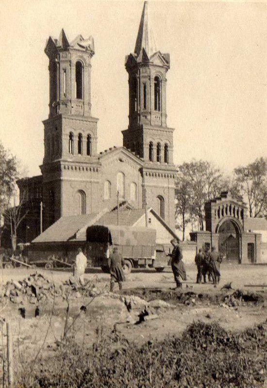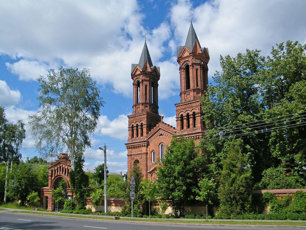 Стиль: Неороманский. Возведен из кирпича на старом католическом кладбище.