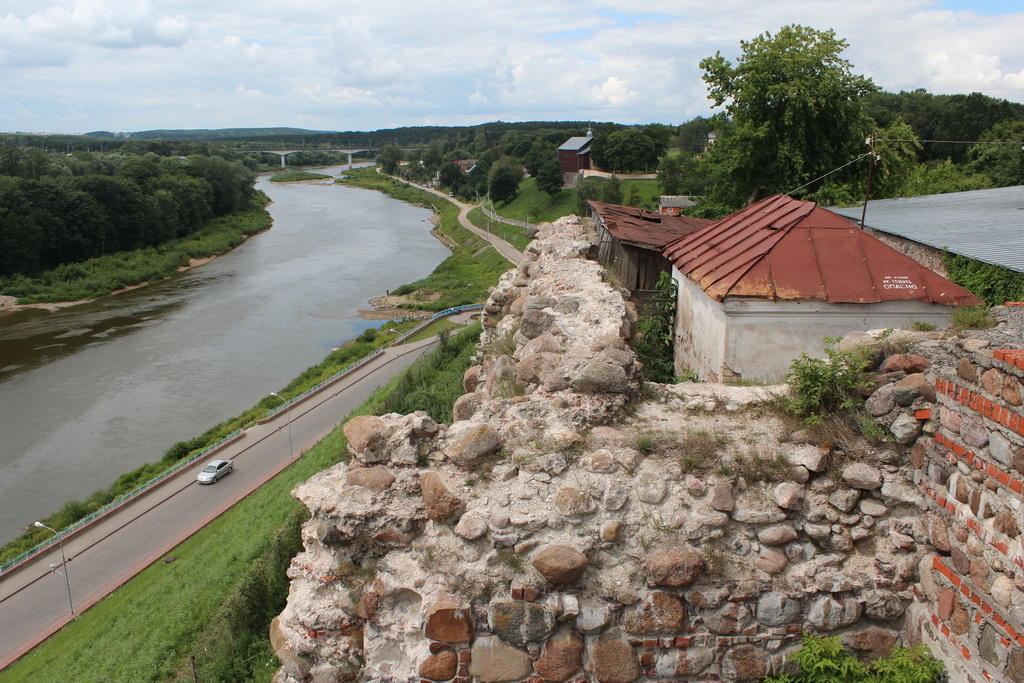 Замок располагается на высоком (около 30 м) и крутом холме на правом высоком берегу реки Неман при впадении в нее речки Городничанки. Ландшафт местности определил форму замка близкую к треугольной. Длина крепостных стен доходила почти до 300 м при толщине 2,6-3 м. Высота стен в разных местах была не одинакова. От города замок был отделен оврагом и глубоким рвом.