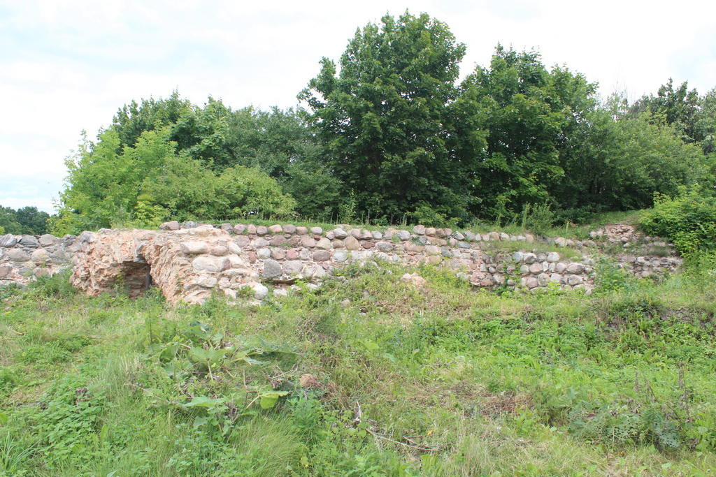 У восточной стены замка, между двумя башнями (круглой и угловой), стоял двухэтажный дворец, выполненный в готическом стиле. О конструкции стен можно предполагать лишь по сохранившимся остаткам кирпичей и камней-валунов. Кирпич в стенной кладке использовали, чтобы выровнять ряды камней, а для башен — как облицовочный материал.