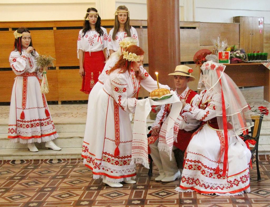 Перевод слова «свадьба» на белорусский («вяселле») всецело отражает этот радостный обряд создания новой семьи. Испокон веков в семьях, проживающих на территории современной Беларуси, в эту пору было принято радоваться, веселиться и отлично проводить время в компании молодоженом, членов семьи, родственников и близких. Нередко невесту отдавали замуж всем селом. Каждый из этапов означал определенное обязательное действо. Мероприятие настолько насыщенное, что со стороны может показаться, что это целое театрализованное представление с игрой действующих лиц по ролям. Отчасти так и есть. Обо всем по порядку.
